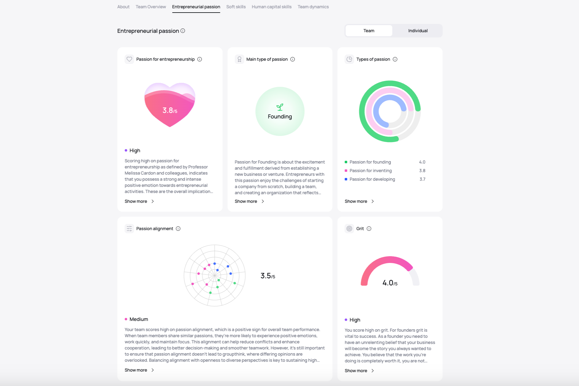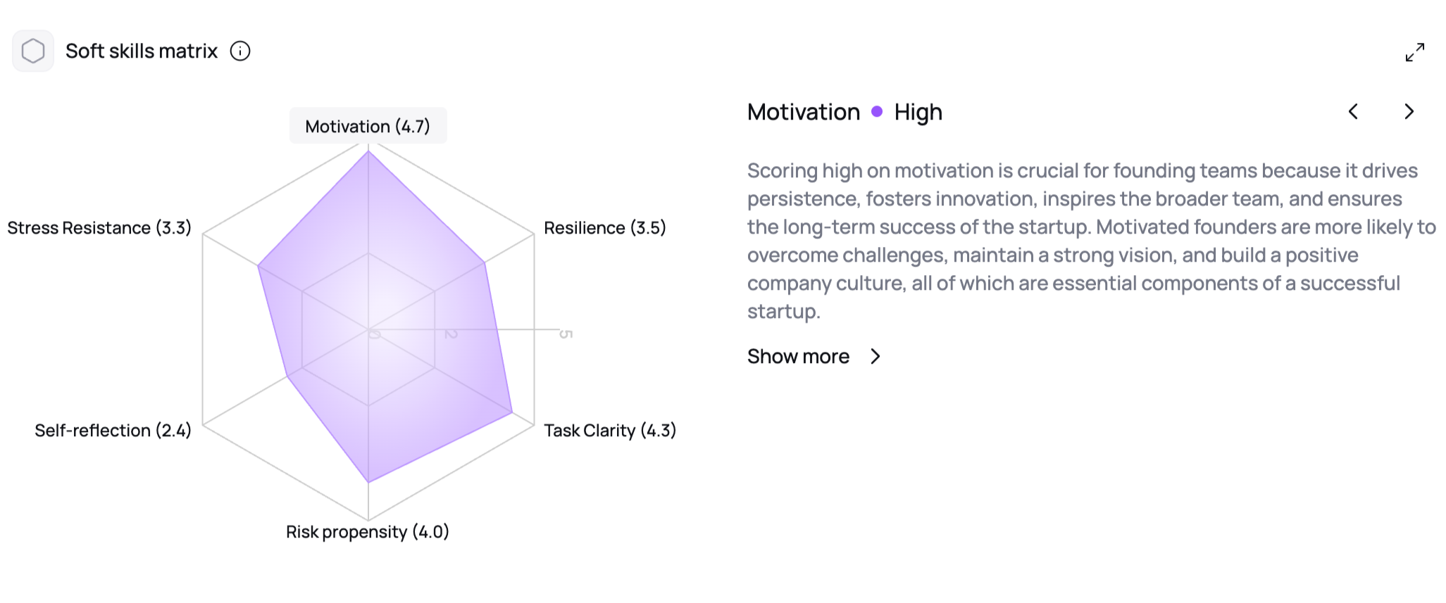 VCVolt is a unique computerized model based on original research that analyses founding startup teams. VCVolt gives us a window into your team’s potential based on facts, not just a gut feeling. It helps us to get to know you better: